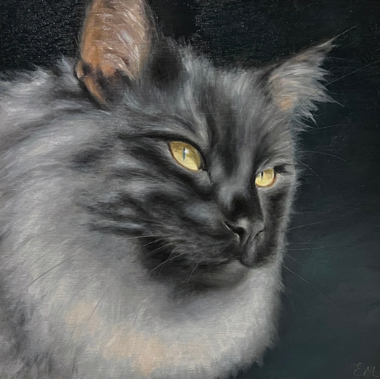 I like to have a few to look at if possible. Even if you’re sure which photo you want me to work from, it helps me to see a few so I can get a sense of your pet’s personality.