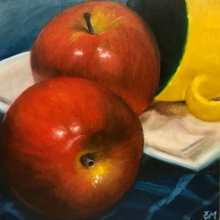 Still Life Red Apple oil on cradled wood panel 20 x 20cm SOLD Freesias for my Mum acrylic on stretched canvas 46 x 46cm SOLD Back to Gallery